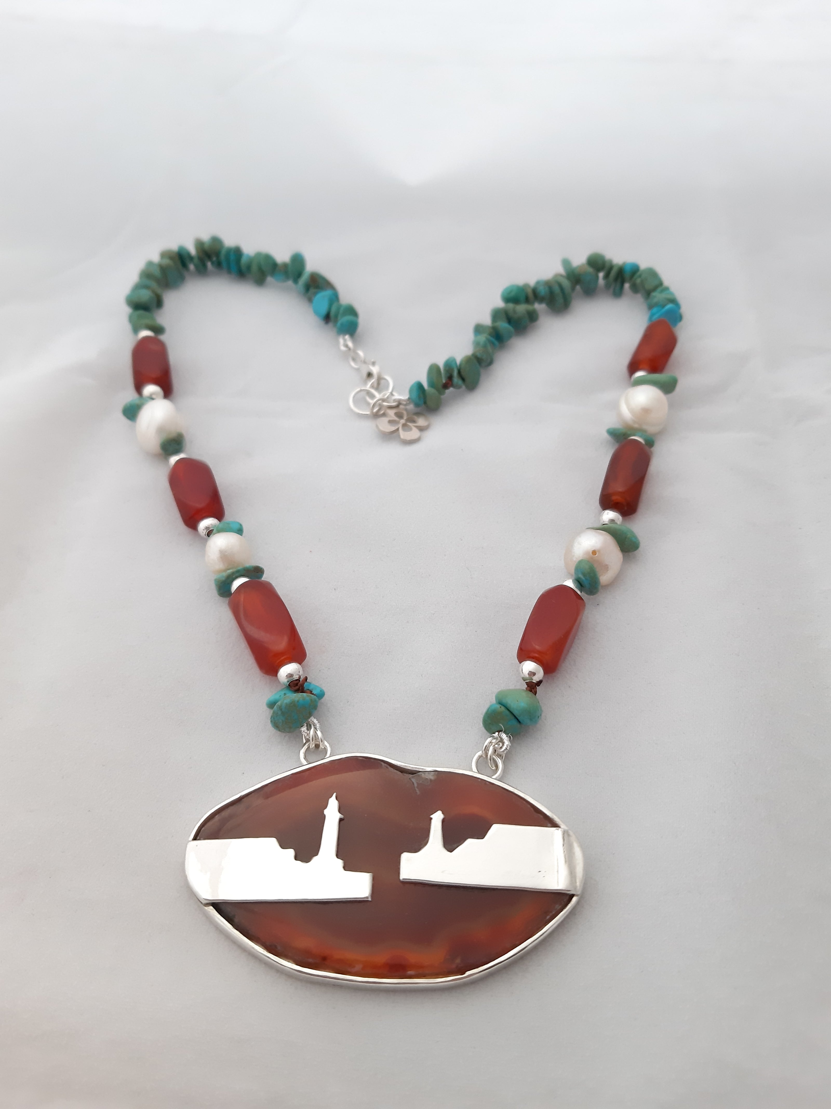 Colgante con el puerto de Tapia de Casariego sobre ágata