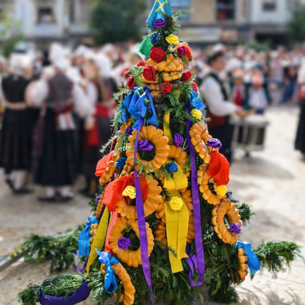 Este collar multicharms de la colección Asturias está inspirado en el Ramo asturiano, ese que se ofrece en tantas fiestas y que mezcla devoción, comunidad y una belleza un poco imperfecta, como casi todo lo auténtico.